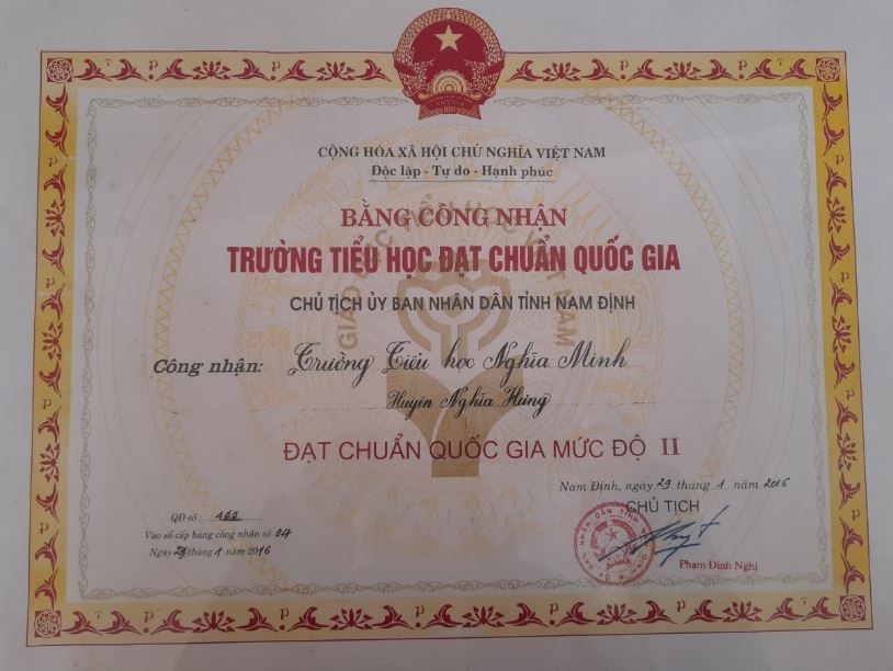 Trường tiểu học Nghĩa Minh đang cùng với ngành giáo dục xã nhà phấn đấu để xứng tầm với trường Tiểu học đạt chuẩn quốc gia mức độ 2 của một xã nông thôn mới kiểu mẫu.