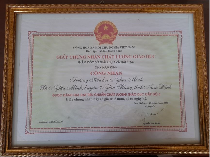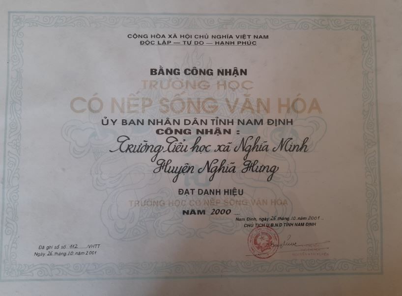 Năm 2000 UBND Tỉnh Nam Định cấp bằng trường học có nếp sống văn hóa.