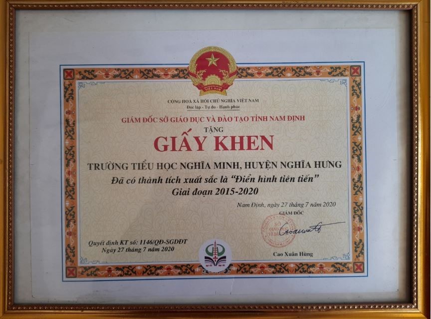 – Năm 2020 trường vinh dự được SGD đào tạo tỉnh Nhà vinh danh là trường điển hình tiên tiến 5 năm liên tục của Tỉnh.