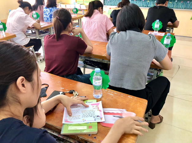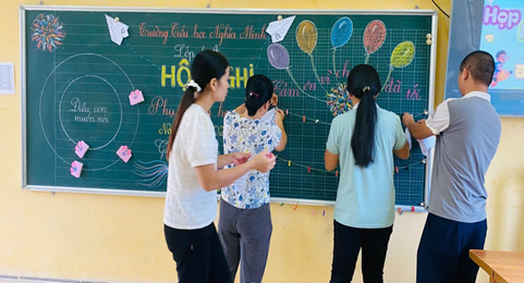 Một số lớp còn lồng ghép hoạt động trưng bày sản phẩm học tập, triển lãm tranh, video giới thiệu hoạt động học sinh, tạo không khí sinh động, gần gũi và gắn kết.