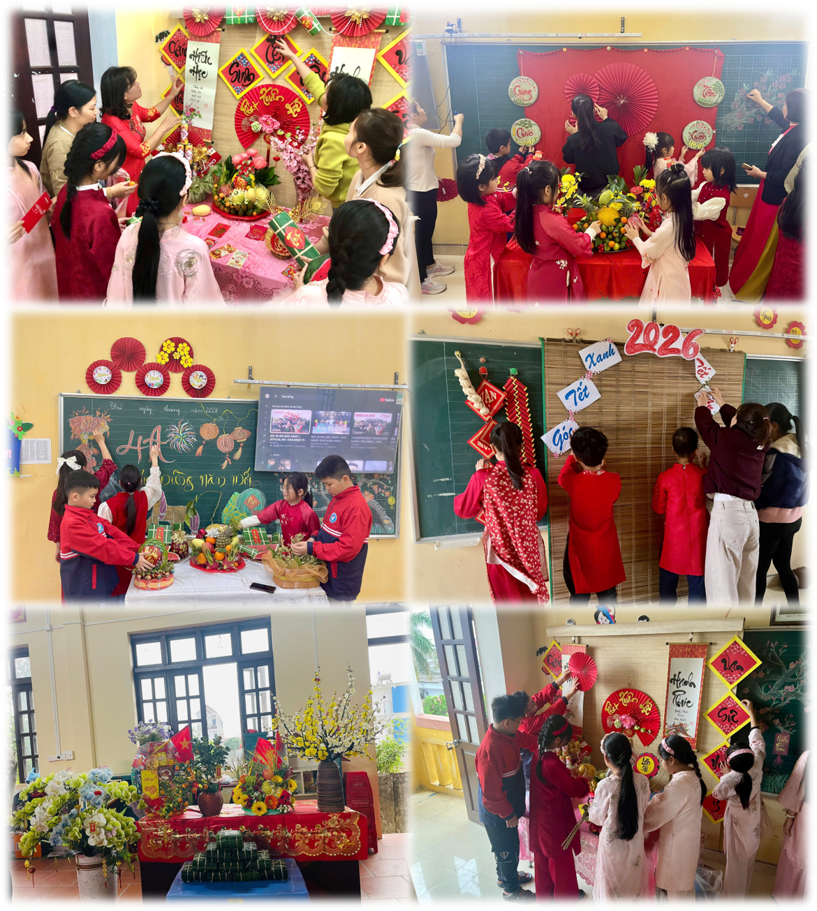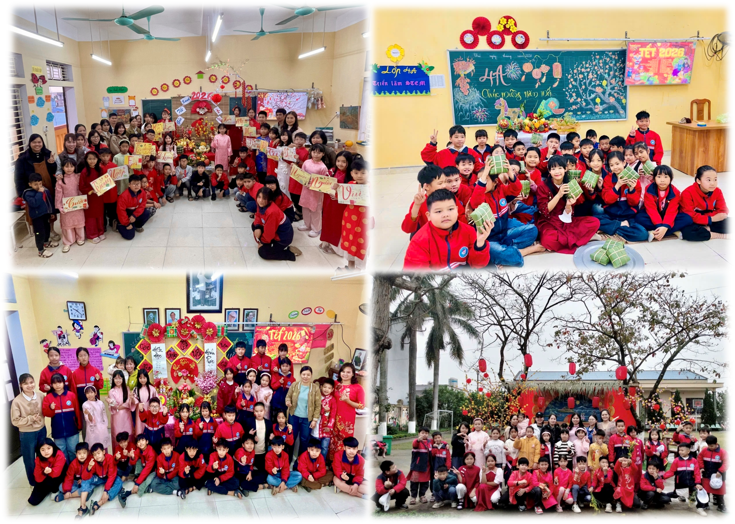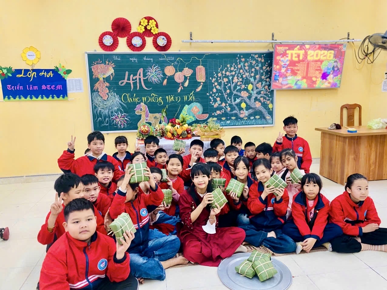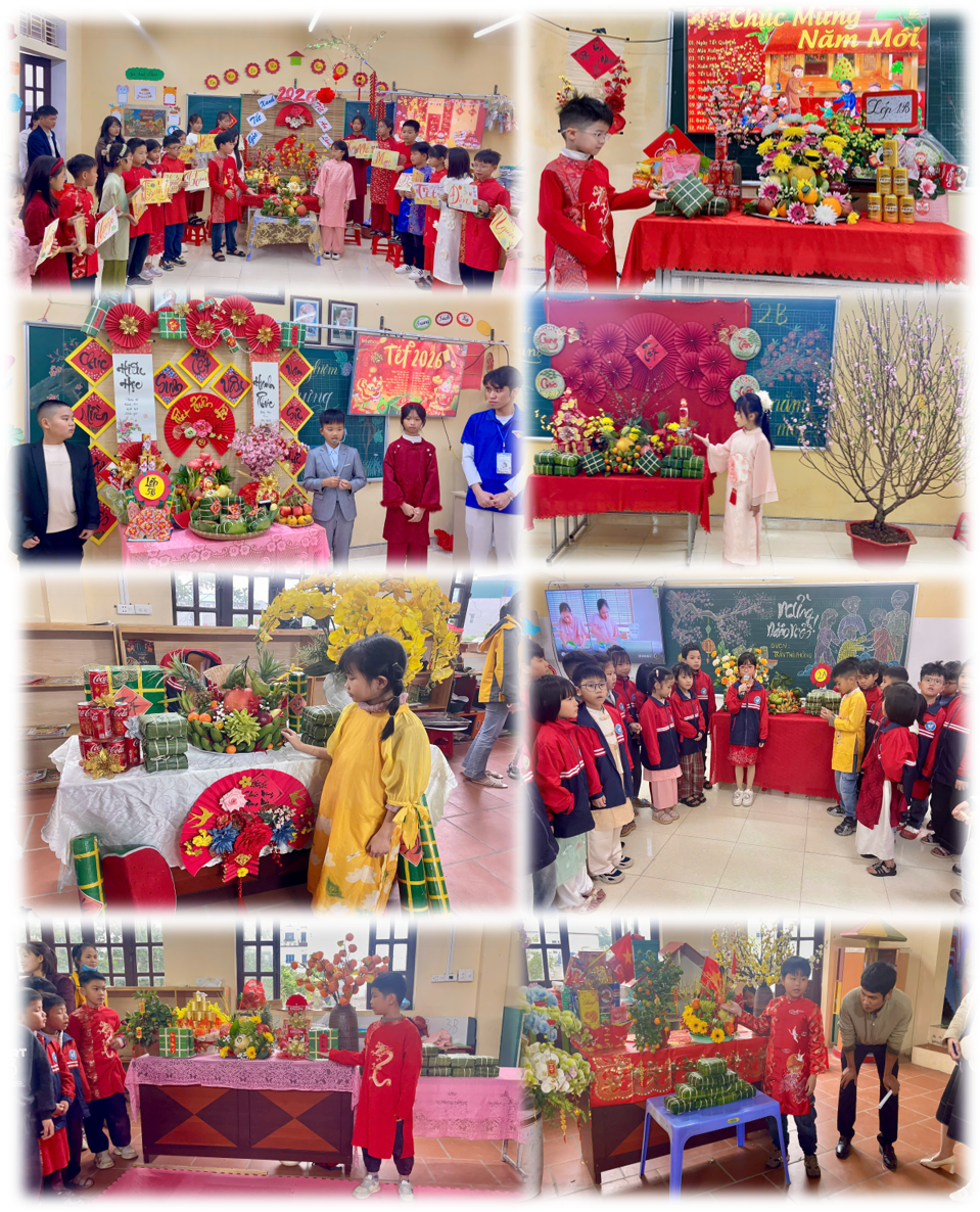 Song hành cùng hoạt động gói bánh là nhiều nội dung phong phú, mang đậm không khí Tết như: chương trình “Bánh chưng xanh 2026”, cuộc thi trang trí “Góc Tết xanh”, thuyết trình mâm ngũ quả, giao lưu văn nghệ và sinh hoạt tập thể. Mỗi hoạt động đều mang lại niềm vui riêng, tạo điều kiện để các em học sinh tự tin thể hiện sự sáng tạo, mạnh dạn giao tiếp và thêm gắn bó với bạn bè, thầy cô.
